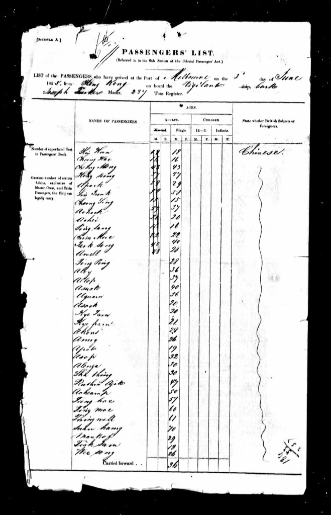 Like Quin Jack, he was also born somewhere near Macao or Canton. It’s likely that he travelled to Australia with an organised group of his countrymen seeking employment and prosperity on the goldfields of Victoria.