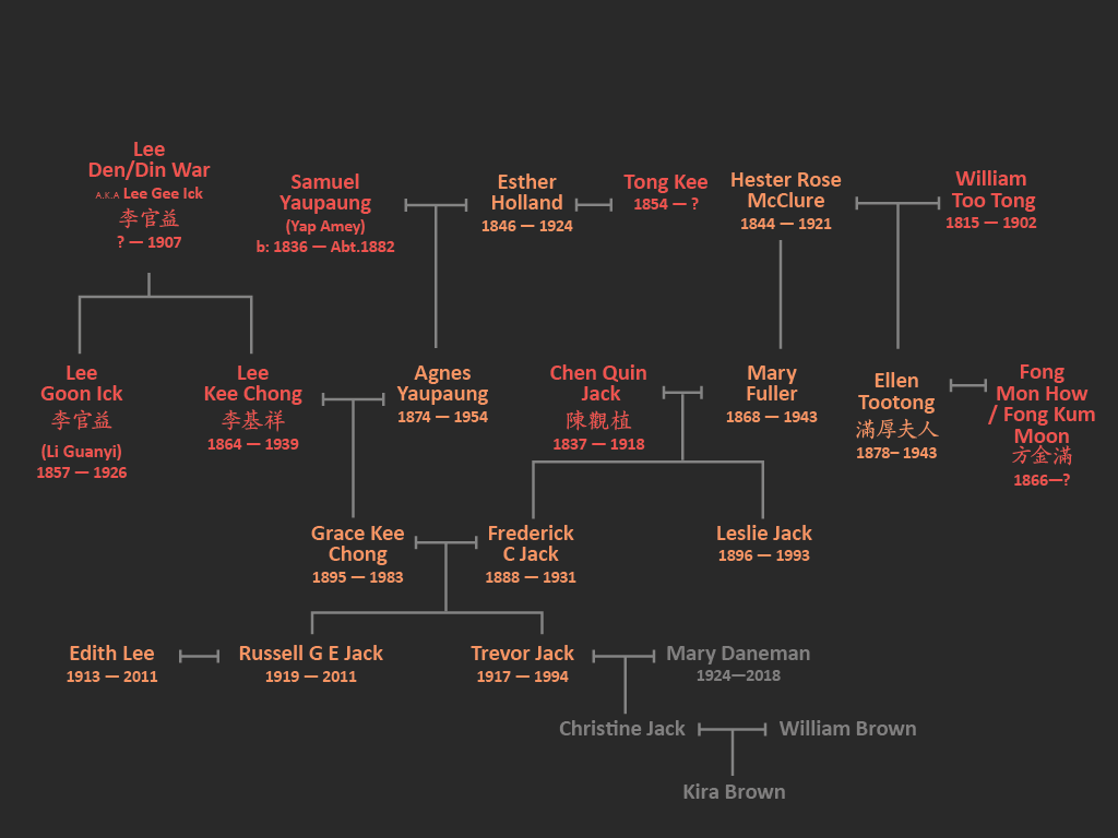Trevor’s parents, Fred and Grace, had met while working for Kwong Sing & Co store. Trevor is Quin Jack’s Grandson – and also my grandfather.