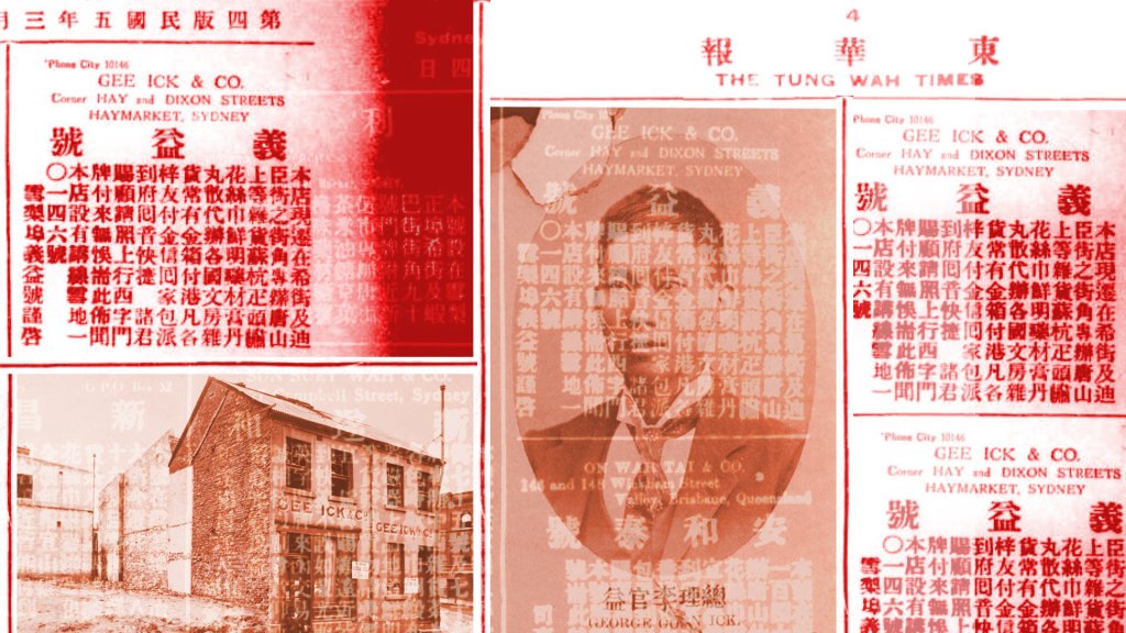 “… Mr Yun Chick (manager for Hing Chong and Co., Goulburn ), street), Mr. Bew (Wing, Sang, and Co., Campbell-street), Mr. Denson (Sun Sam Chay and Co., Pitt-street), Mr. Goon Yick (Gee Ick and Co., Pitt-street), Mr. Ben Hing’ (Castlereagh-street), Mr. Don You (Campbell-street), and Mr. Sun Johnson (the translator of the “Chinese Herald”). 6